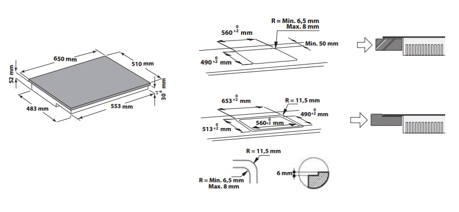 - В варочных панелях на скрытой части, которая находится под столешницей