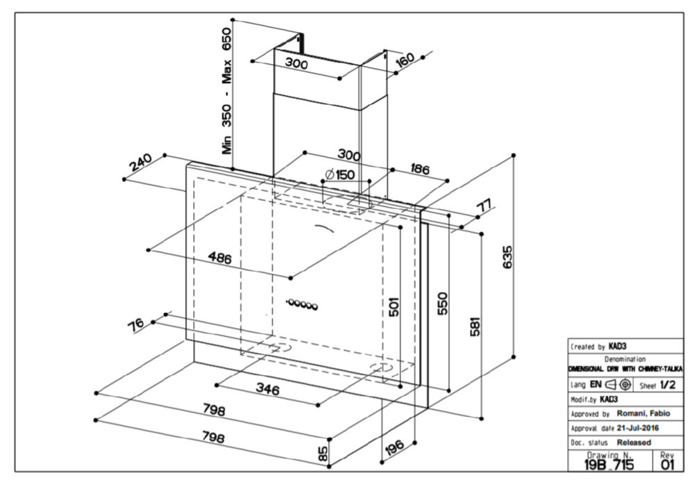 Инновационный дизайн делает вытяжку настоящим «окном» над варочной поверхностью: специальная технология Nautilus полностью избавляет от необходимости делать корпус наклонным. Вытяжка может быть полностью вертикальной! Модель Talika получилась еще более изящной благодаря контрастным материалам и оптимальному расположению панелей. Четкие геометрические линии всех элементов не смешиваются: базовая панель белого цвета прекрасно сочетается с фронтальной панелью из состаренной меди или титана, выражая безошибочный стиль Фабер.