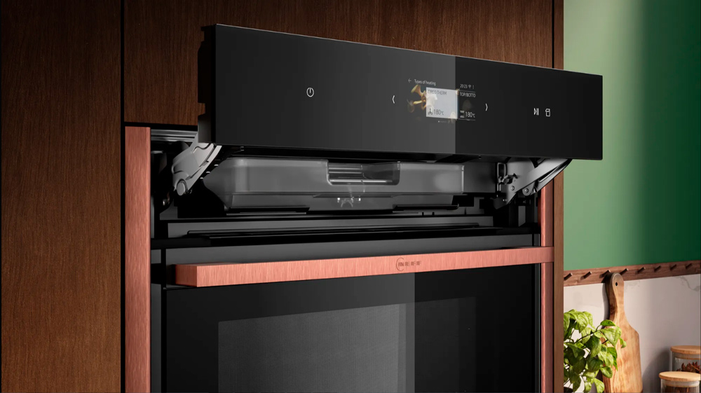 Особенности модели сенсорные переключатели Full Touch Control, светодиодное освещение, функции Sous-Vide, «Выпечка», «Пицца», «Тушение», «Режим для подъема теста», 4D-горячий воздух, CircoTherm, 23 режима нагрева и функция приготовления на пару, система Slide & Hide, которая обеспечивает плавное открывание дверцы и ее закрывание с помощью накладной ручки