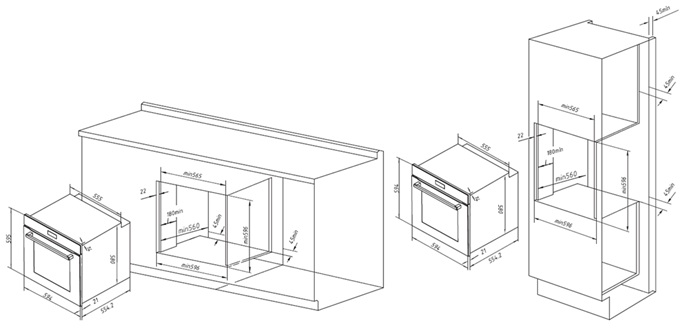 Холодное атермальное стекло CoolTouch. Благодаря установленному в духовом шкафу вентилятору, холодный воздух засасывается из кухни, скользит по внешней стороне нижней и задней стенки и выводится наружу через вентиляционную решетку в дверце. Таким образом, сам прибор и мебель защищены от перегрева - стенки духового шкафа не перегреваются, а стекло остается холодным.