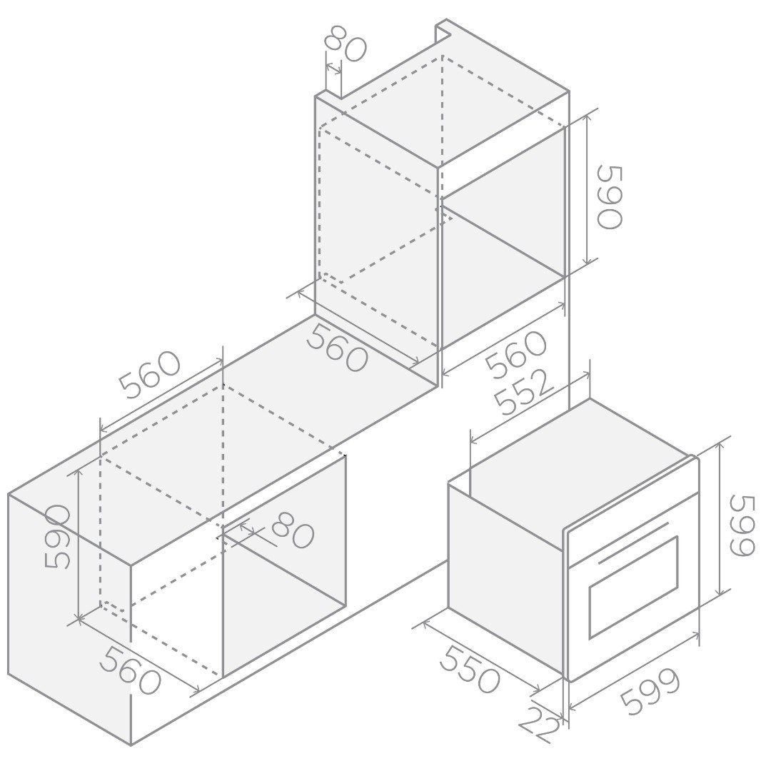 - Размер ниши (В*Ш*Г): 590*560*560 мм