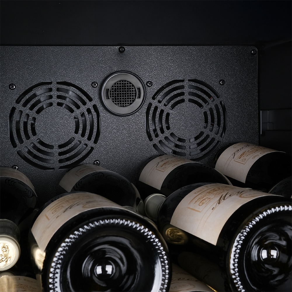 Модель MV133-KBF1 оснащена компрессорной системой охлаждения, которая отличается высокой эффективностью и долговечностью. Компрессор создает холод, путем сжатия хладагента и его последующего расширения, поэтому винный шкаф быстро достигает нужной температуры и стабильно ее поддерживает.